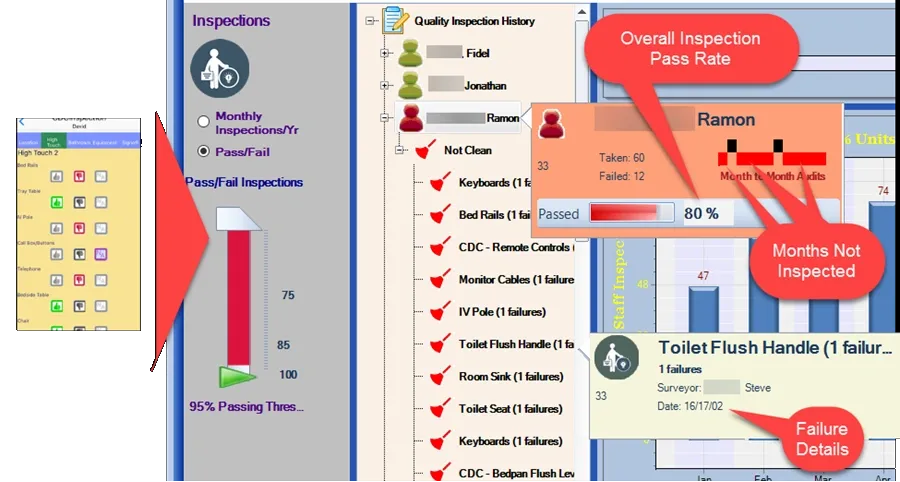 Illustration: Integration with the Dashboard can provide information on the number of inspections, failures, frequency of inspections and more.
