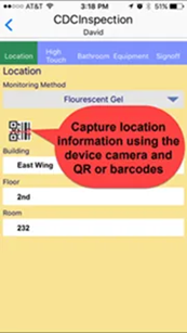 Rooms and equipment can be designated by a unique QR or barcode affixed to the door or item. Using these designators eliminates data entry issues and speeds up data capture. |