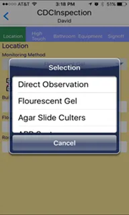 Realize accurate data entry by selecting items such as the Inspection Monitoring Method from scroll lists. |